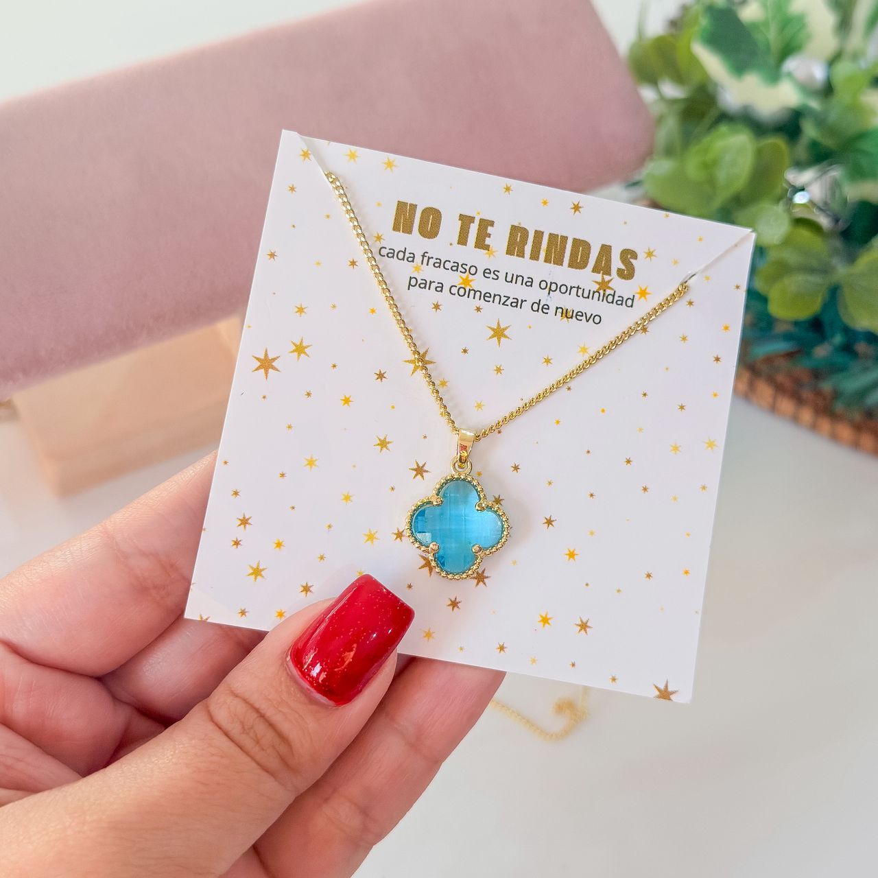 20078-4 Collar armado trebol azul