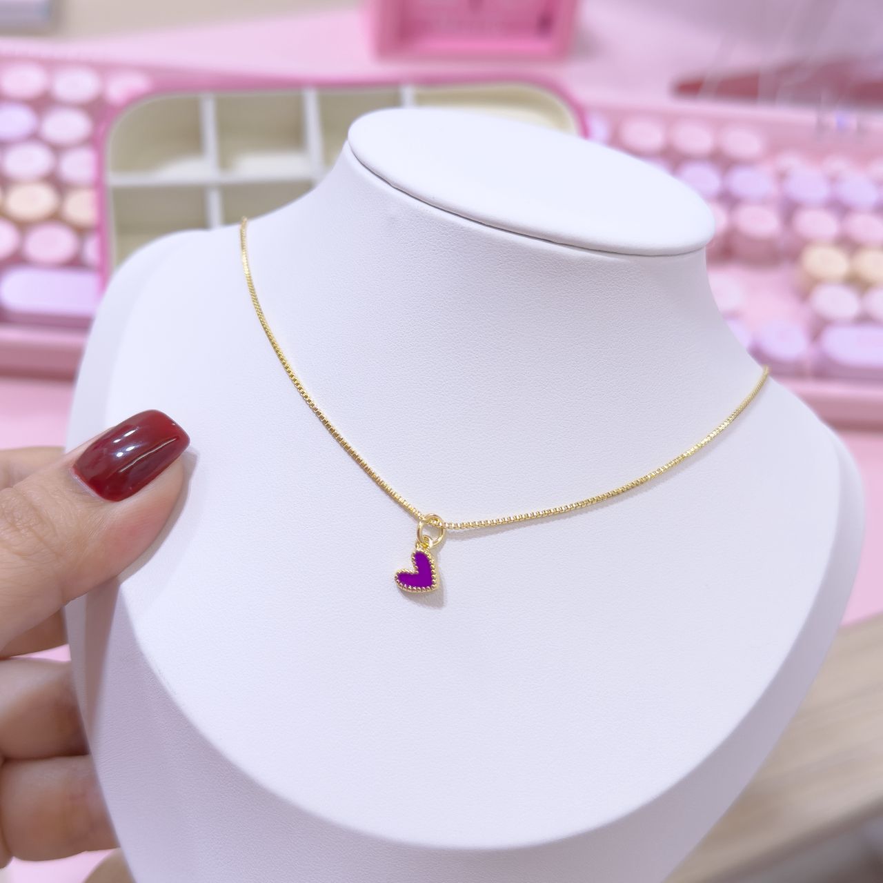 20083-7 Collar armado corazon mini morado