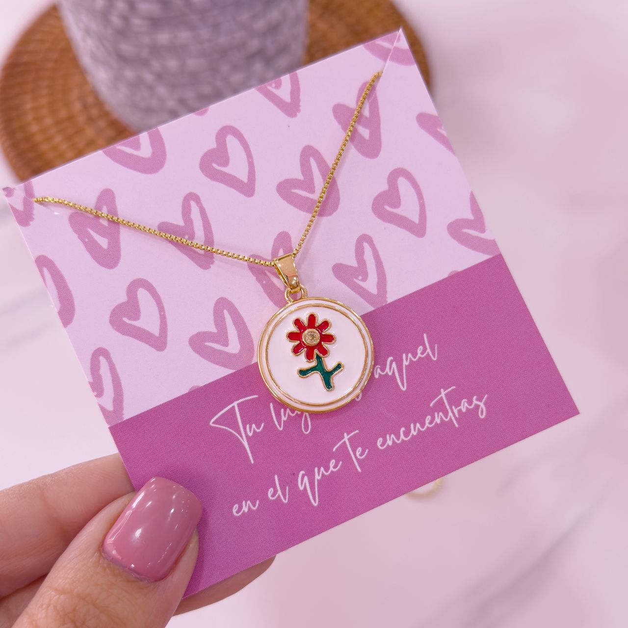 20223 – Collar armado girasol rojo fondo blanco