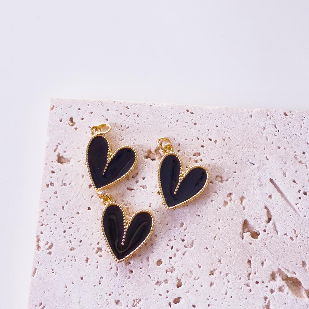 20017 – Dije corazon en V esmaltado negro
