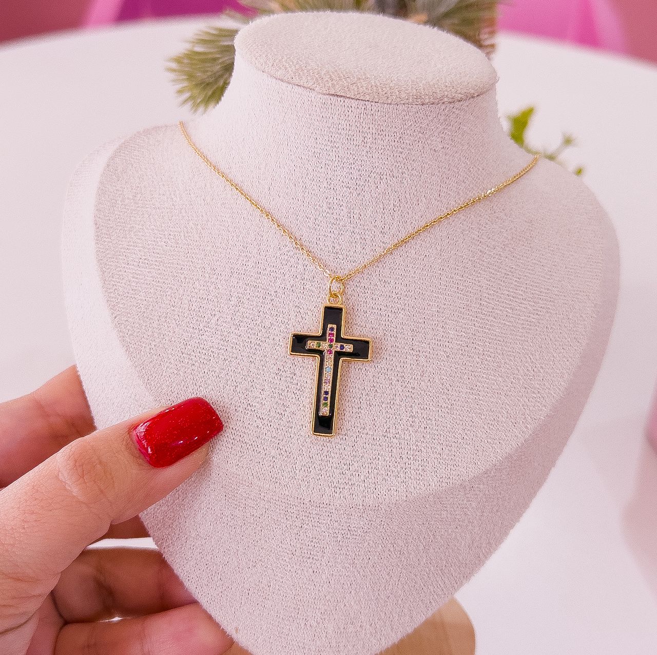 20113 – Collar armado cruz negra con colores