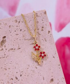 20165 – Collar armado flor doble rojo