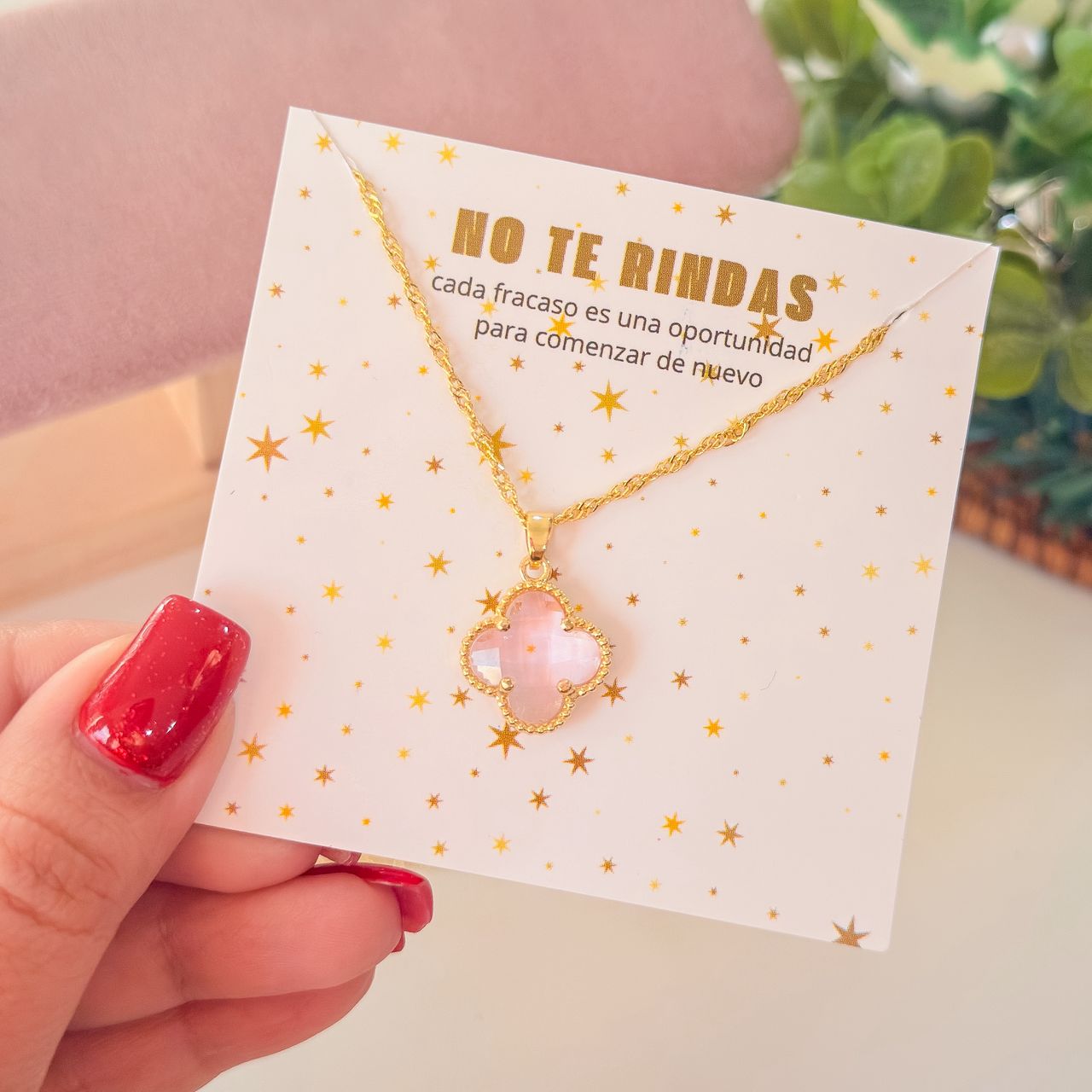 20233 – Collar armado trebol rosado