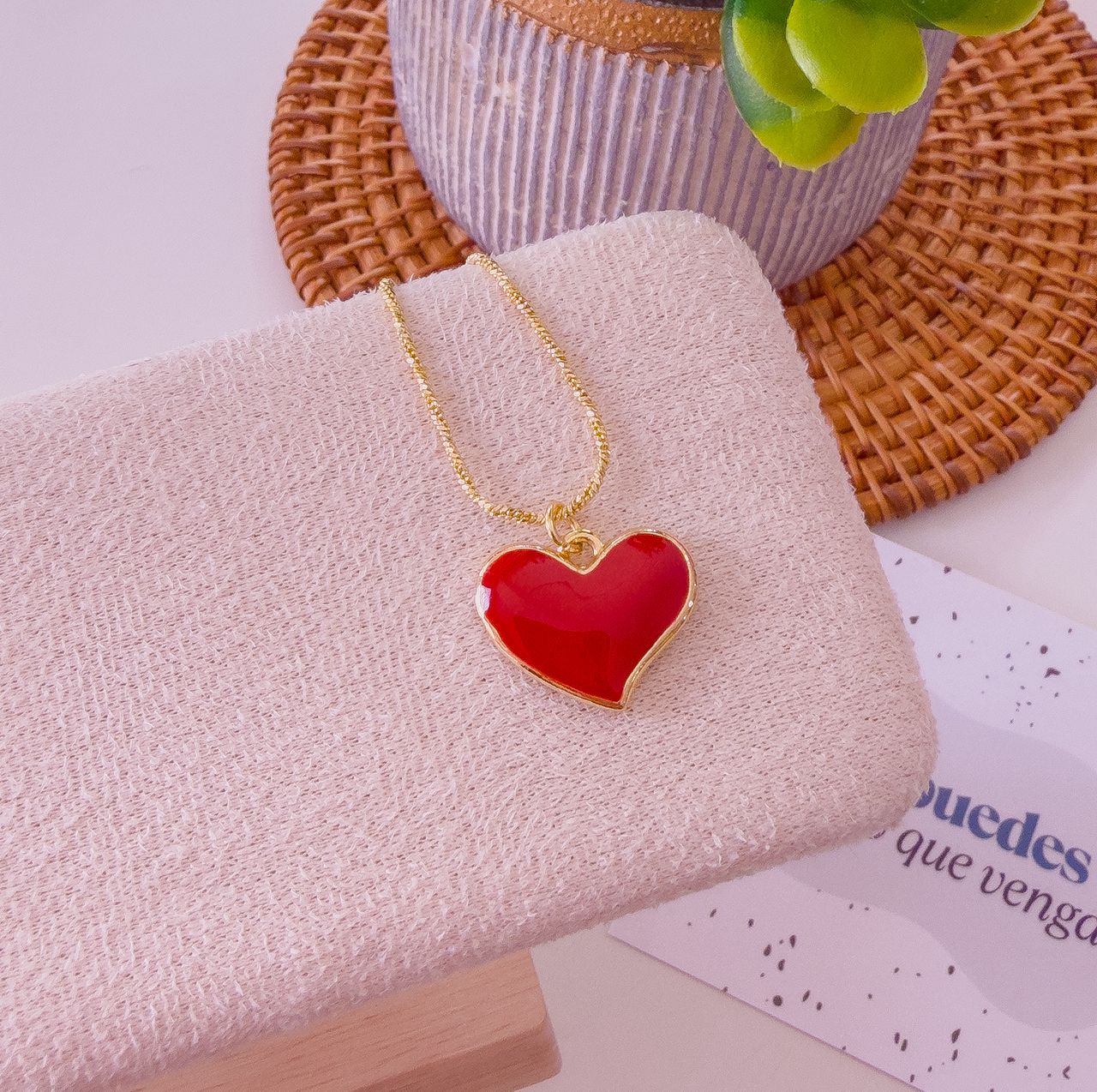 21012-2 Collar corazon esmaltado rojo