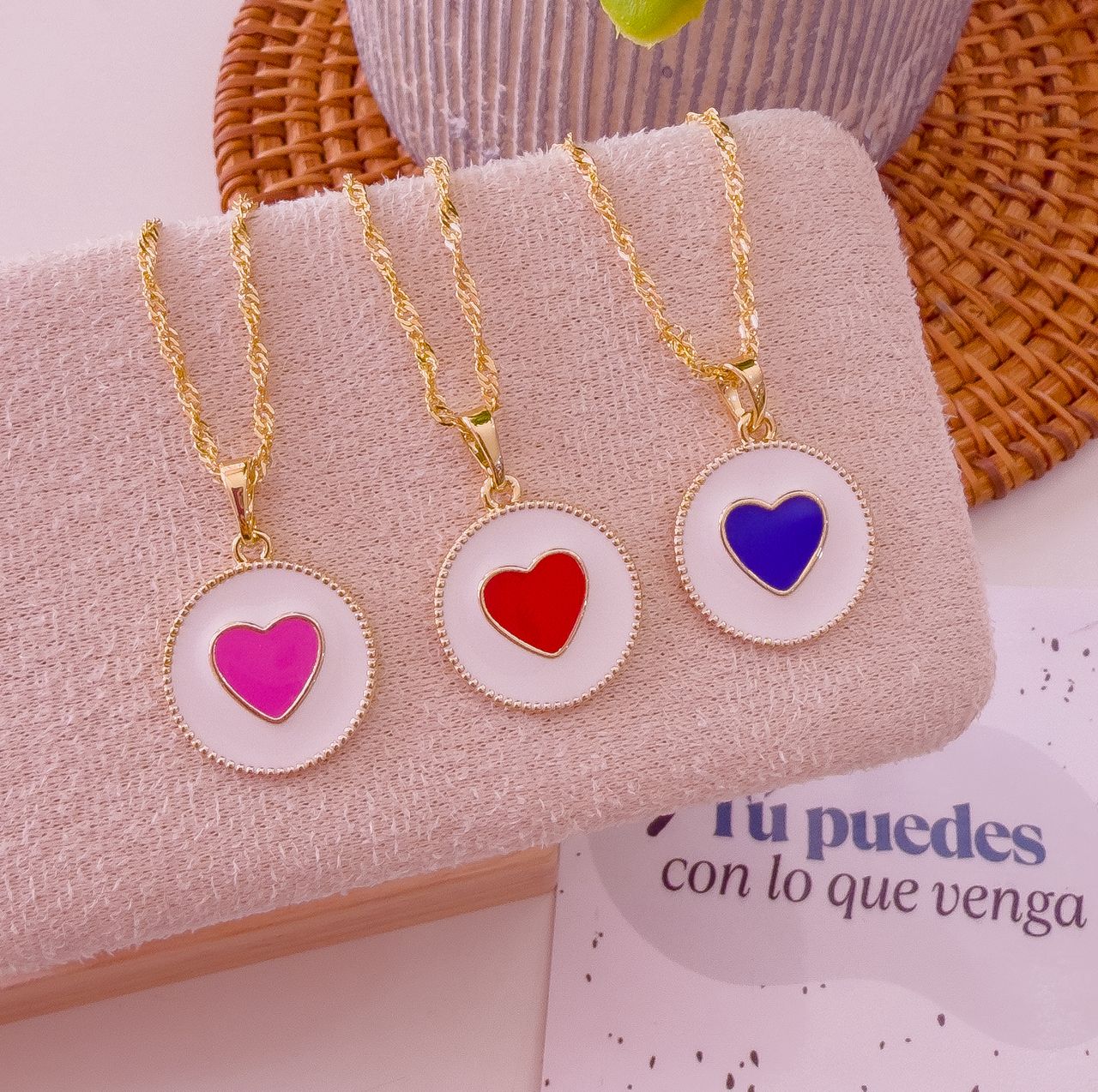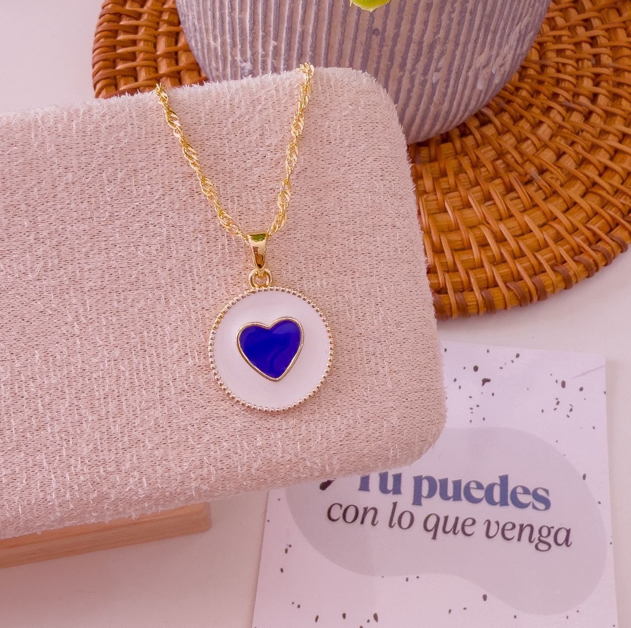 21015-1 Collar corazon fondo blanco esmaltado azul marino