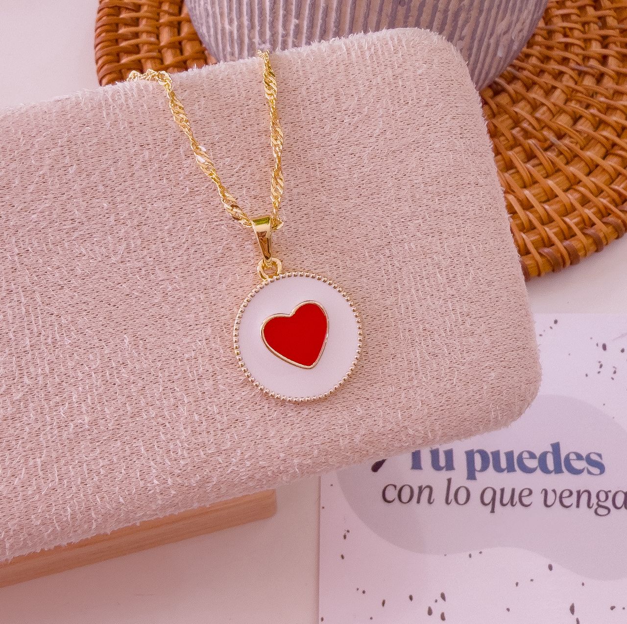 21015 – Collar corazon fondo blanco esmaltado rojo