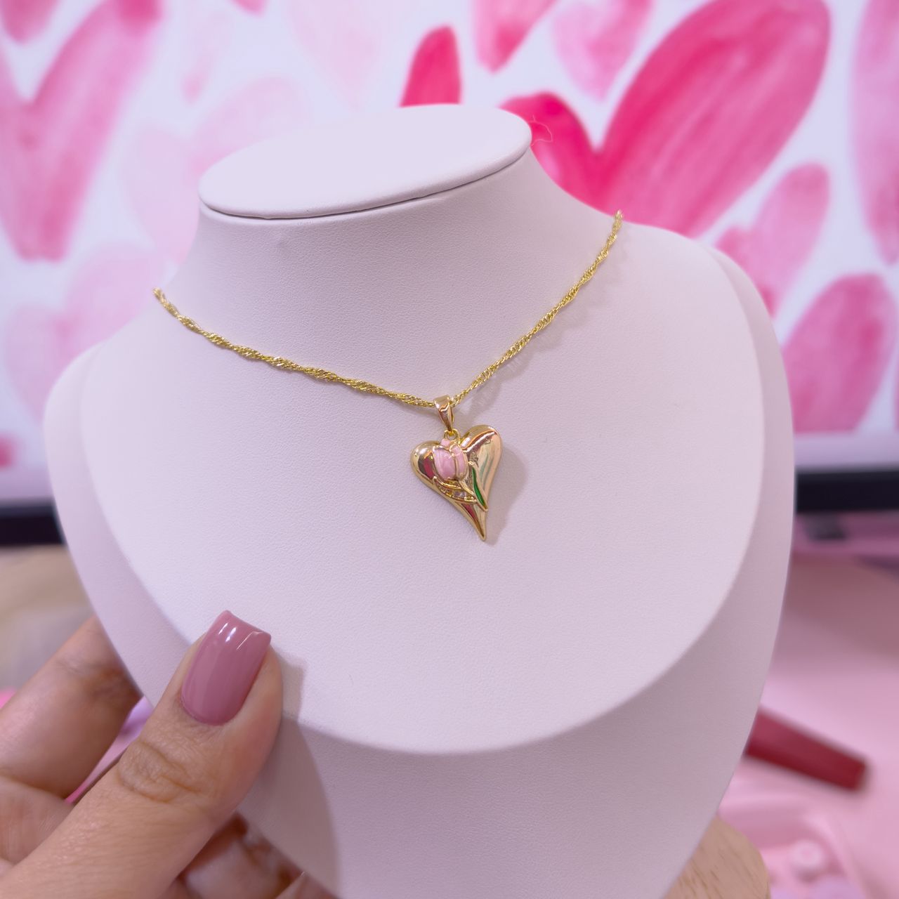 21075 – Collar armado corazon y flor rosa