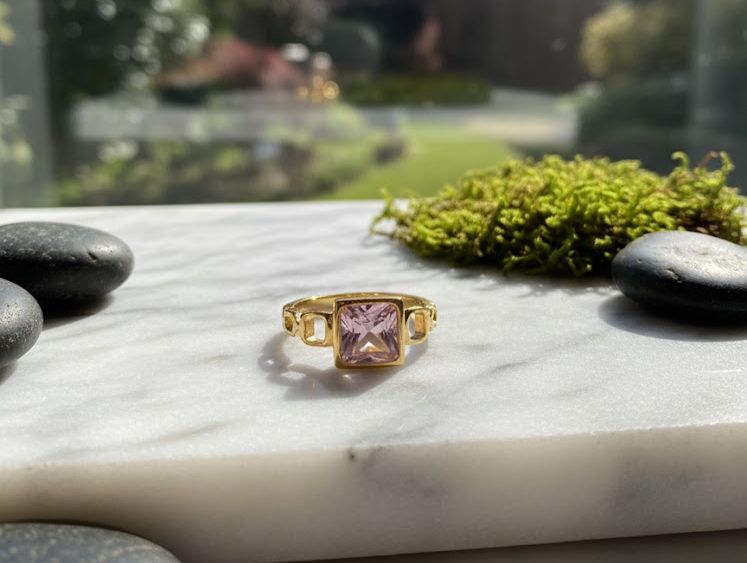 30064 – Anillo Acero cristal cuadrado morado