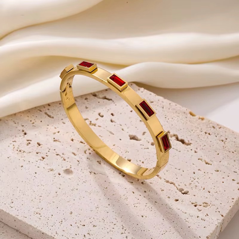 41015-3 Pulsera acero cristales rectangulares Rojo