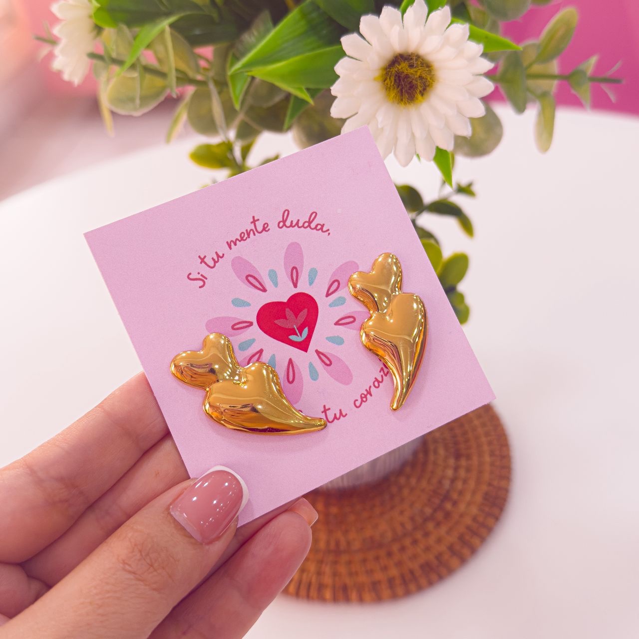 80022-1 Zarcillos acero dorado bicorazon lado