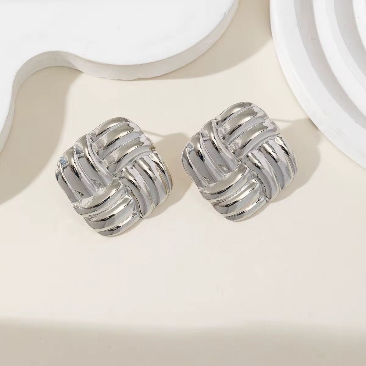80022 – Zarcillos cuadrados con lineas plateado