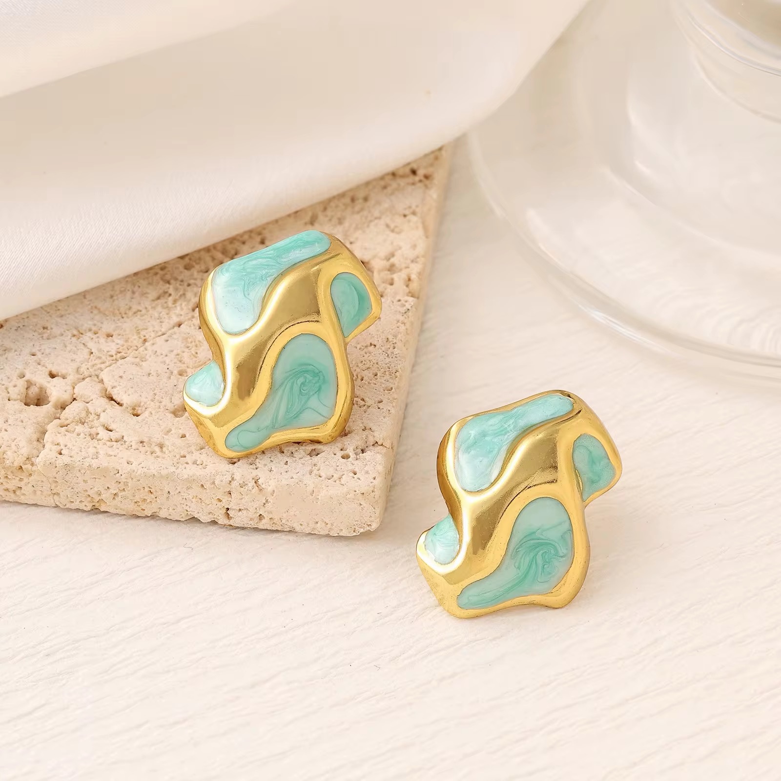 80030-2 Zarcillos acero abstracto esmaltado