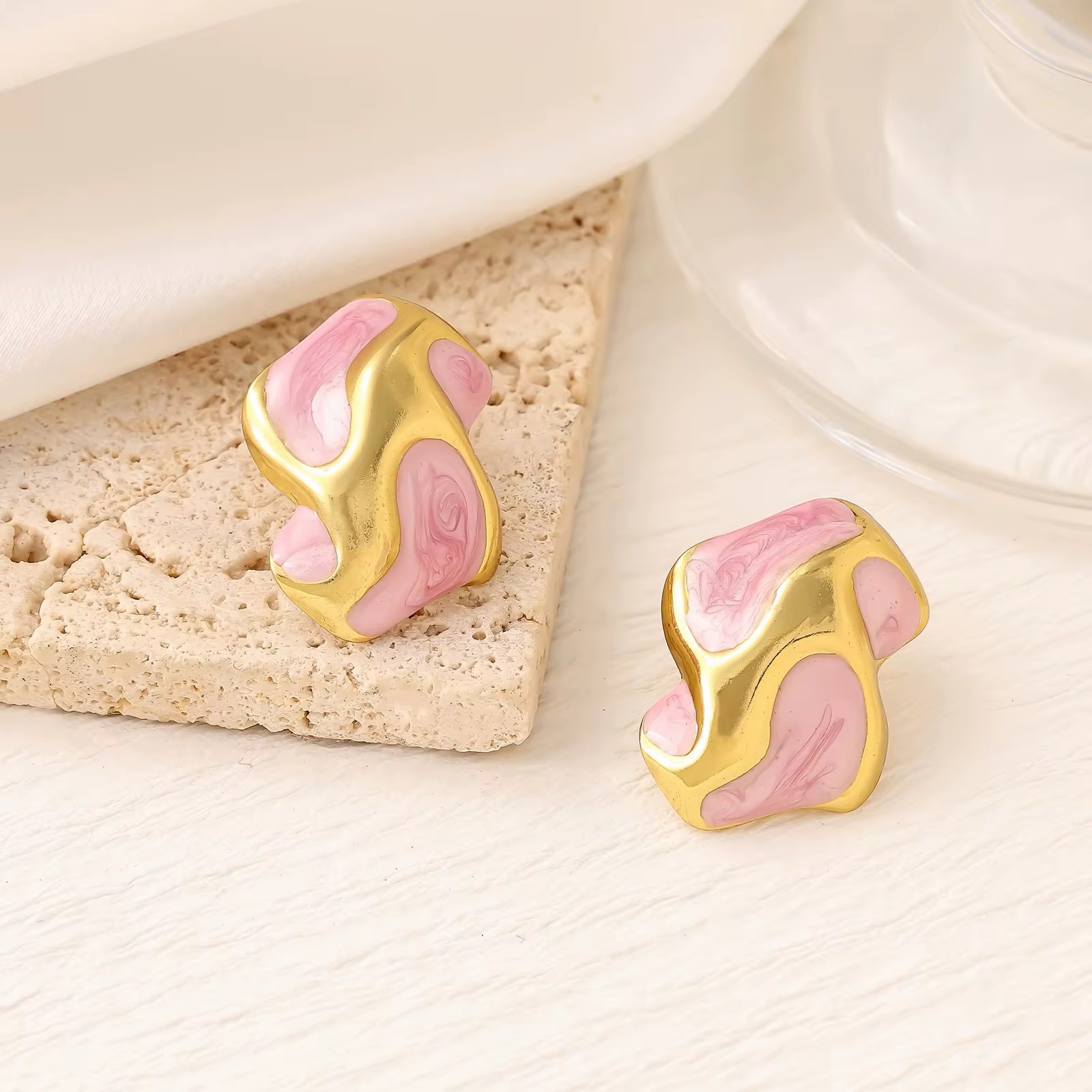 80030-3 Zarcillos acero abstracto esmaltado
