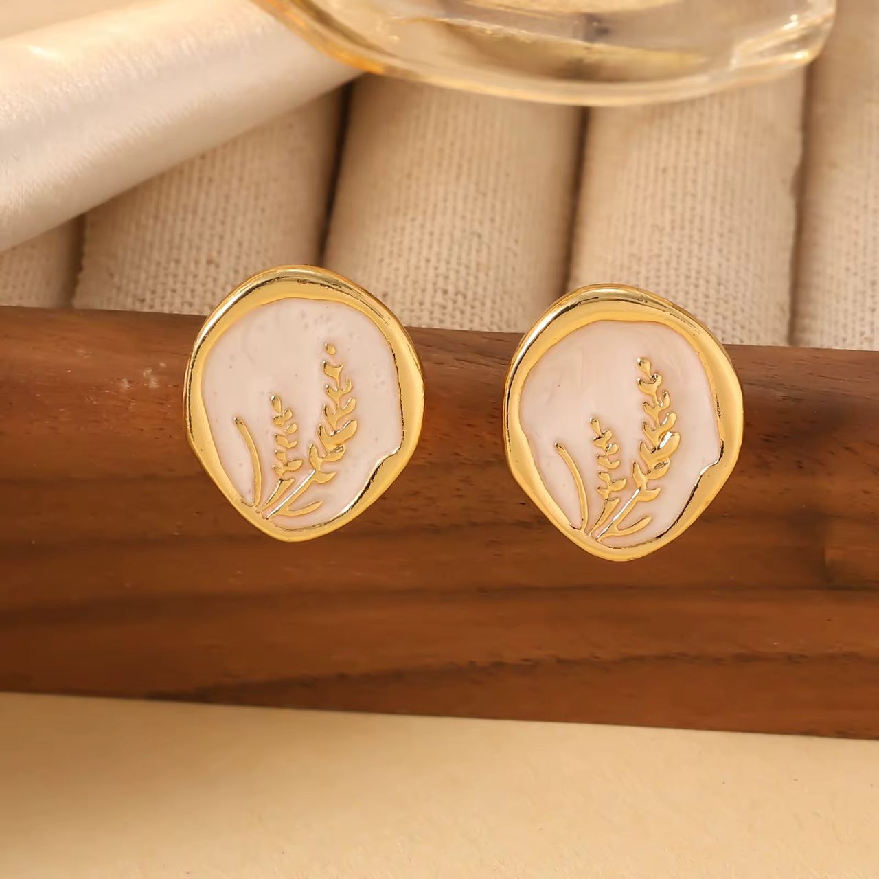 80043 – Zarcillos acero esmaltado hoja blanco