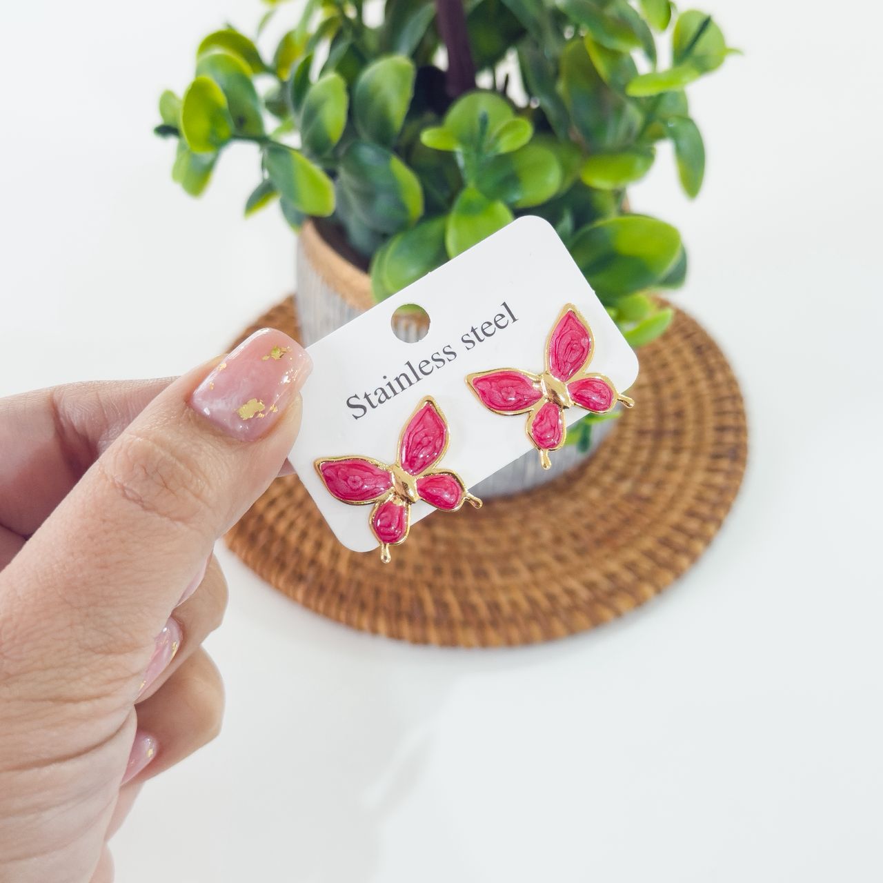 80049 – Zarcillos esmaltado mariposa roja