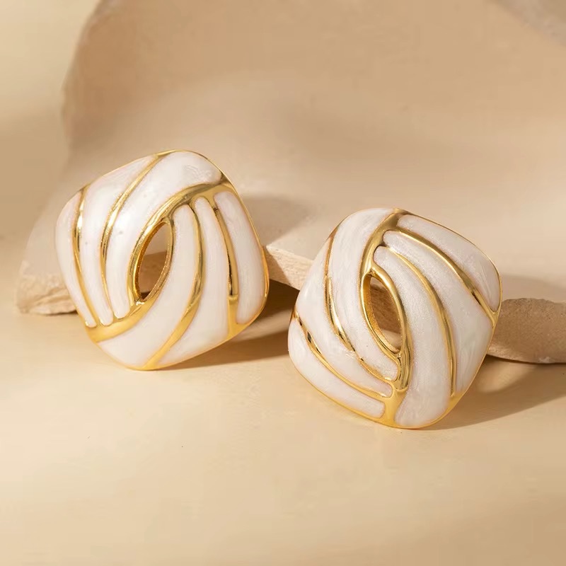 80051-1 Zarcillos acero cuadrado con lineas esmaltado BLANCO