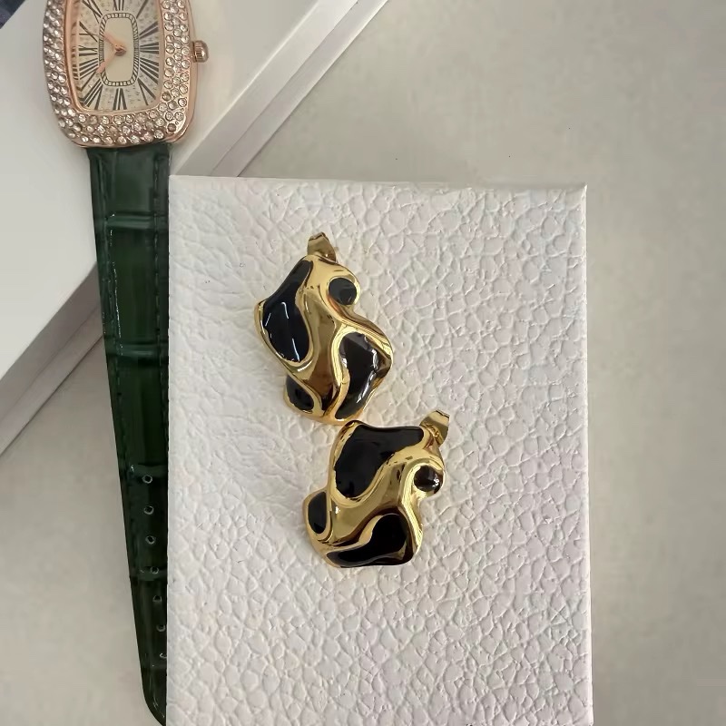 80083 – Zarcillo acero dorado esmaltado negro tamaño grande