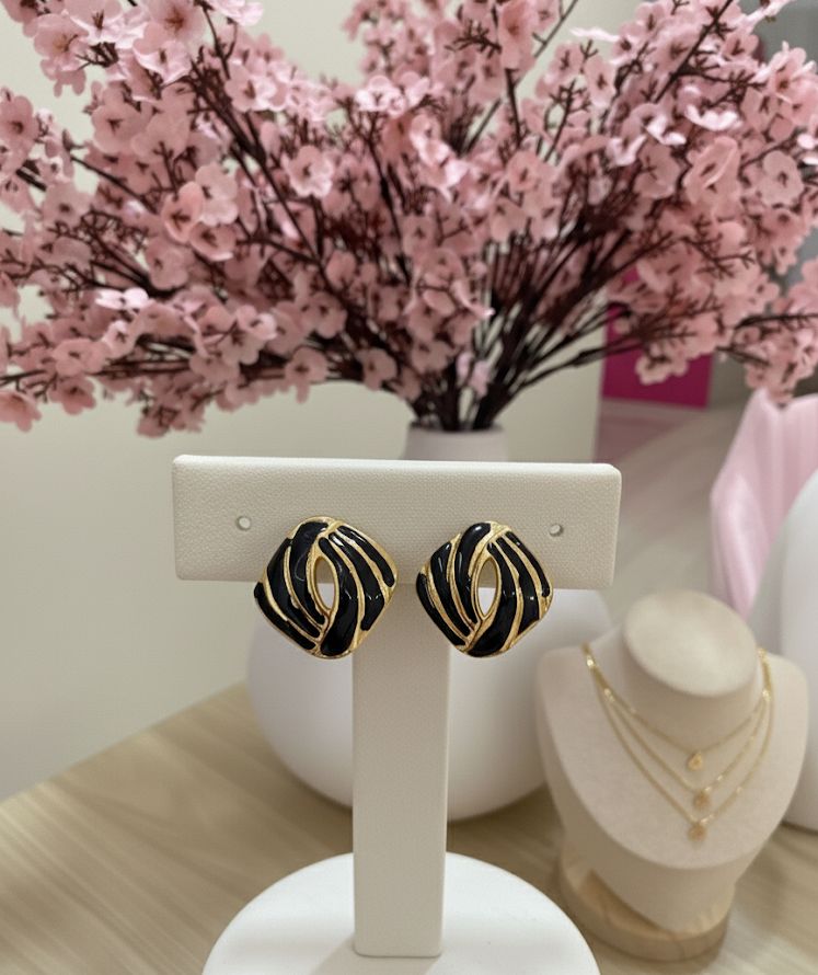 80083 – Zarcillos acero cuadrados con lineas esmaltado blanco