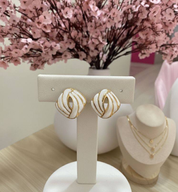 80083-1 Zarcillos acero cuadrados con lineas esmaltado negro