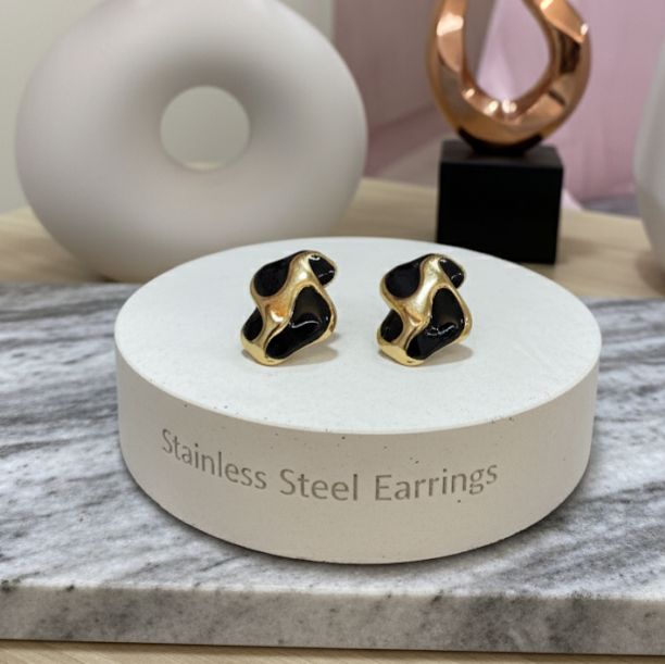 80102 – Zarcillos acero abstracto esmaltado negro