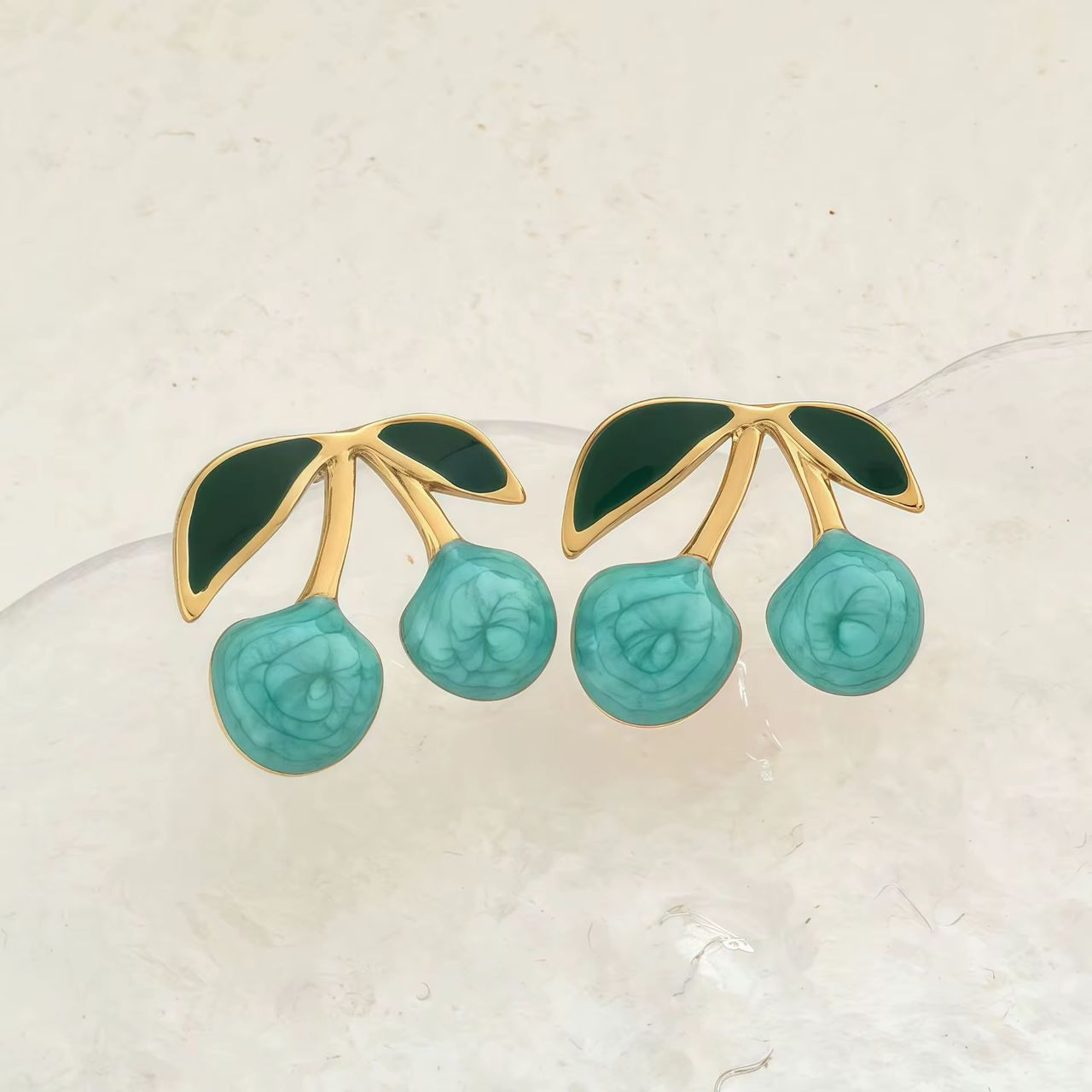 80112 – Zarcillos Acero Cereza Turquesa esmaltado
