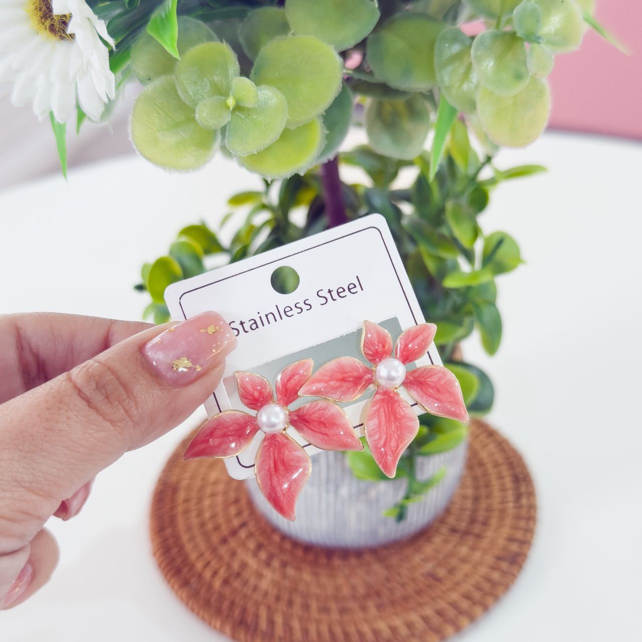 80118-5 Zarcillos acero flor fucsia esmaltado