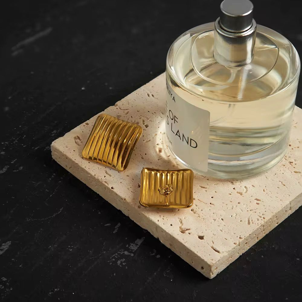 80156 – Zarcillos Dorado acero cuadrado con lineas