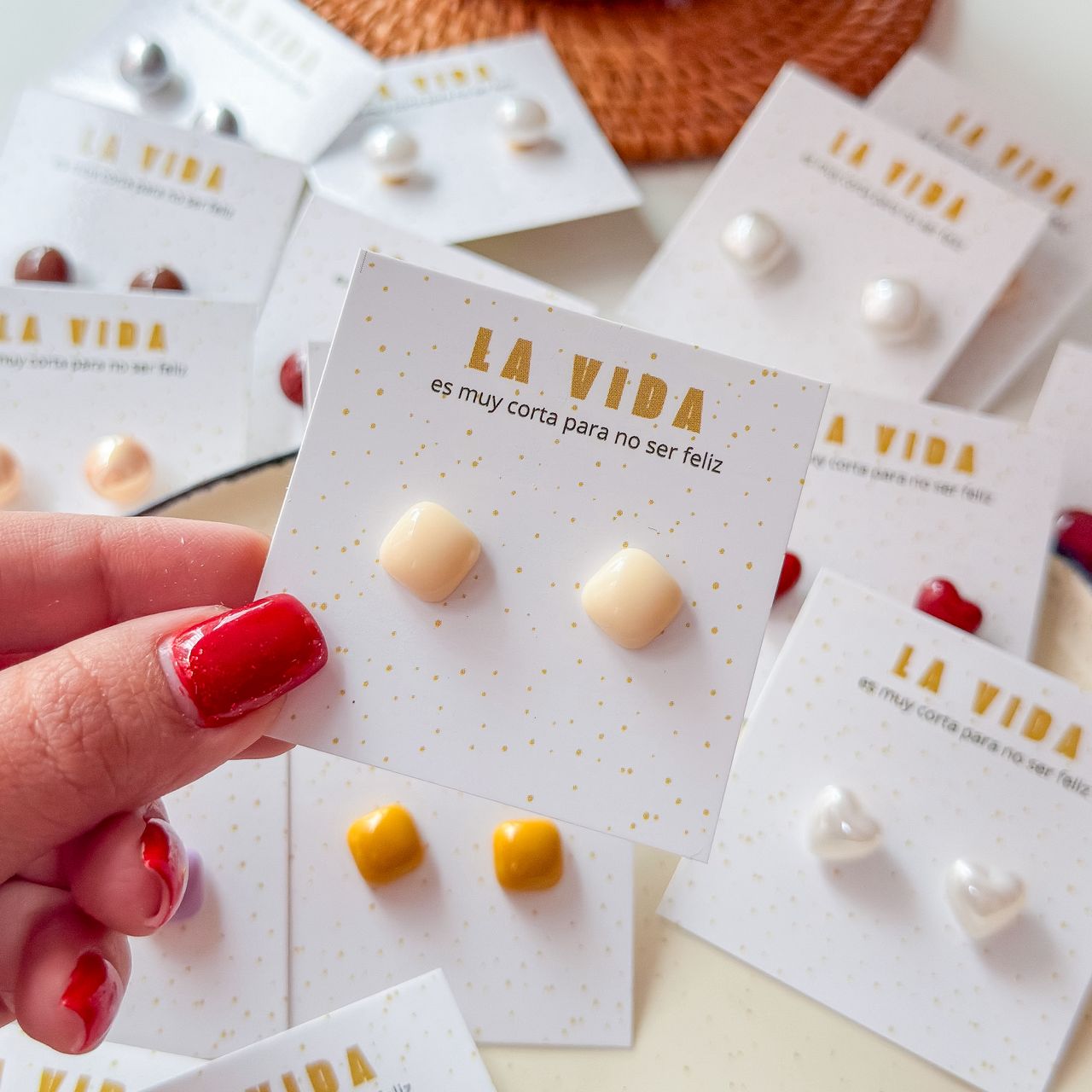 80177-5 Zarcillos Acrilico cuadrado beige