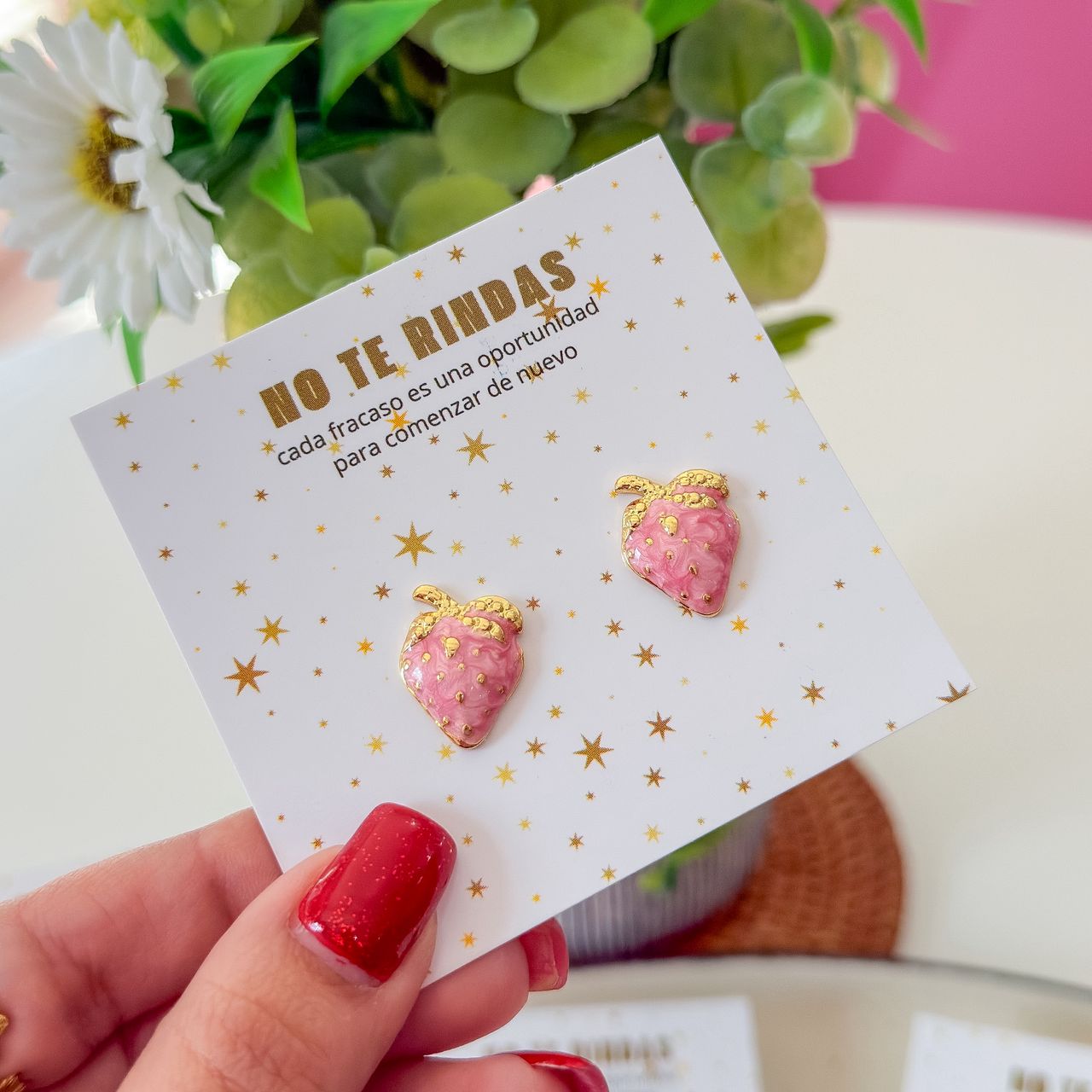 80357-2 Zarcillos Acero Fresa rosada esmaltado