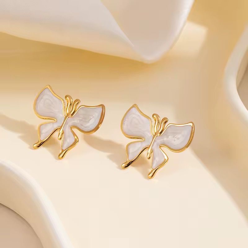80373-2 Zarcillos acero mariposa blanco