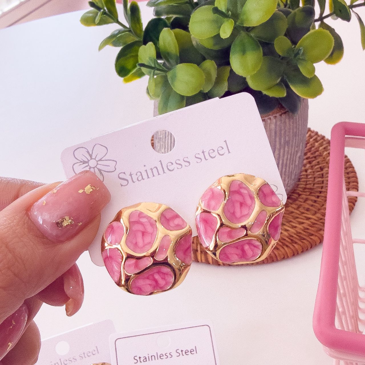 80382-4 Zarcillos acero redondo esmaltado rosado
