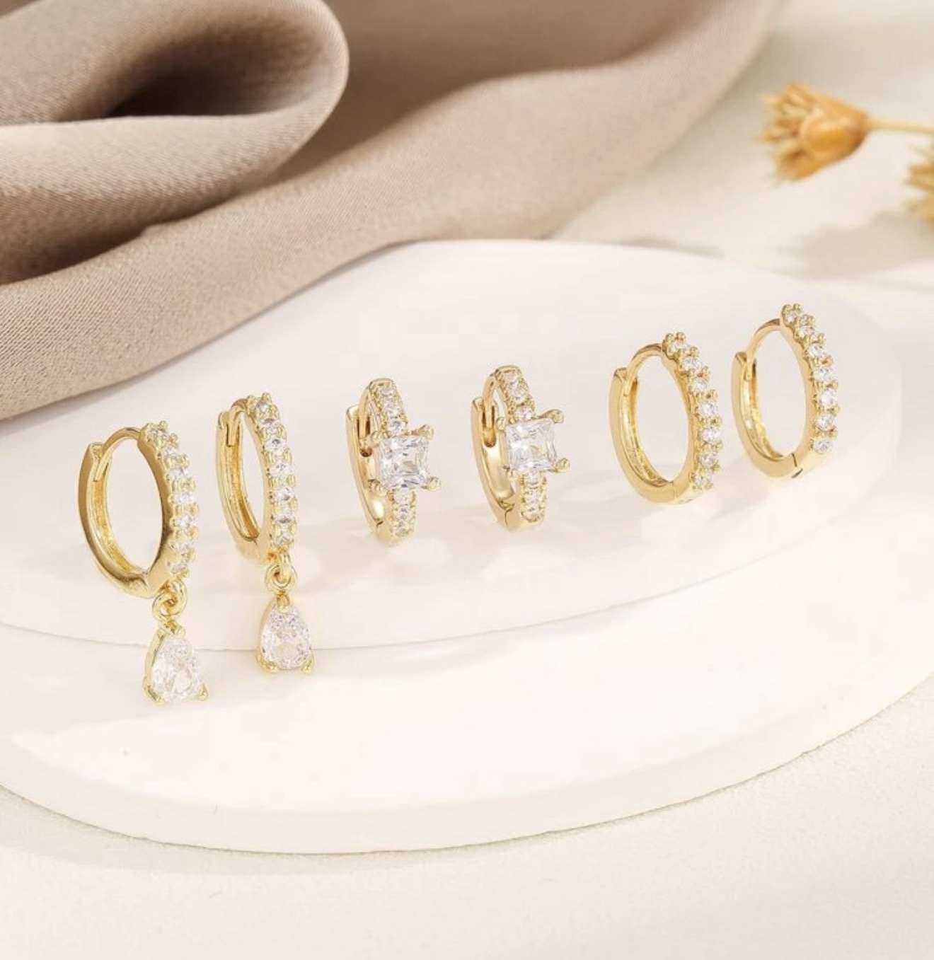 80404 - Set 3 Zarcillos dorado con cristales