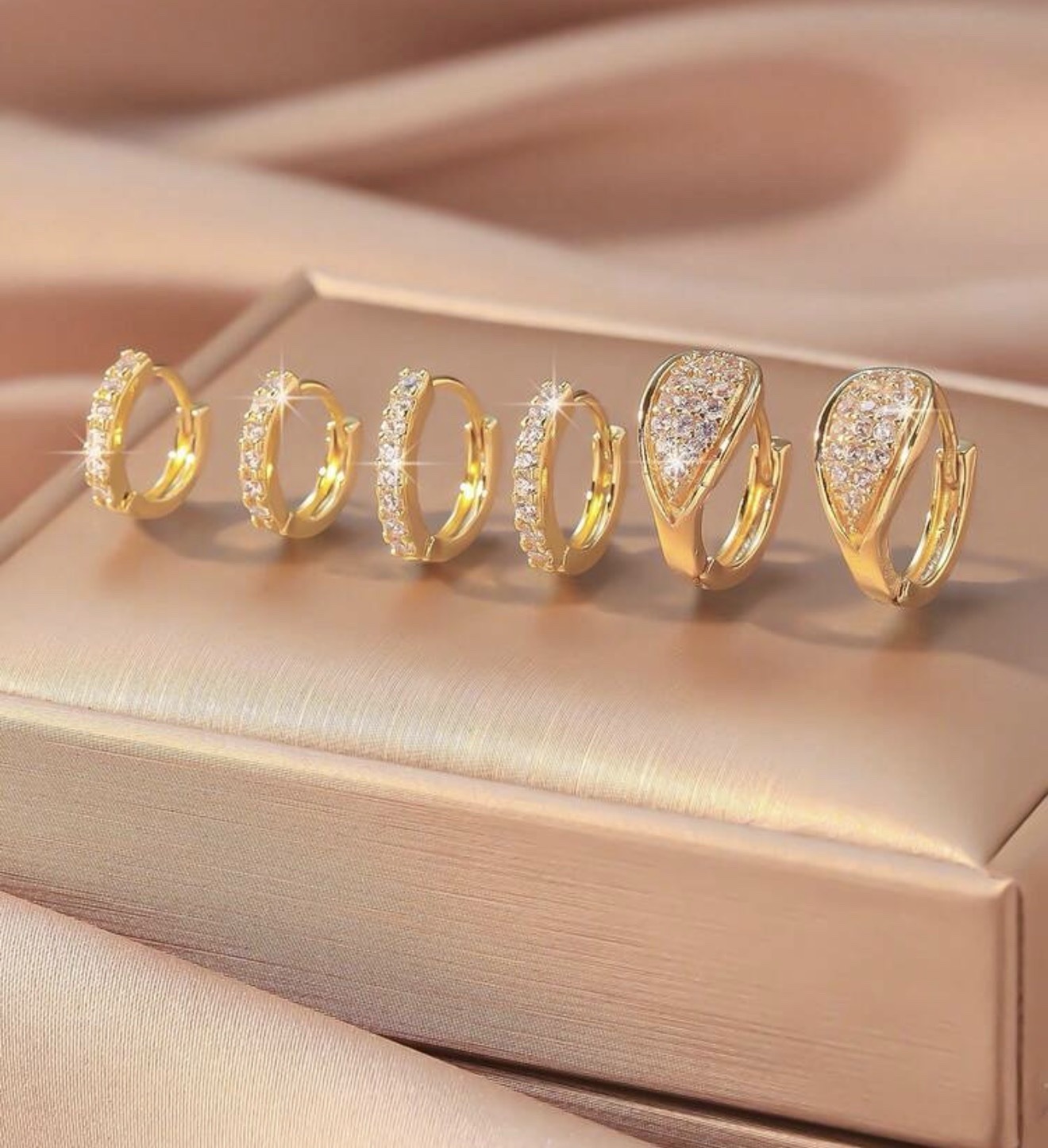 80410 – Set 3 pares Zarcillos dorado con cristales